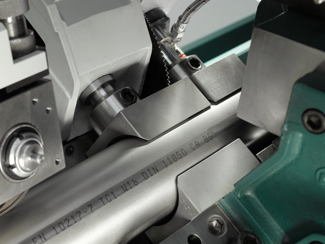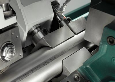 - Med postopkom pride do rahlega dviga cevi od podporne mize in vpenjalnega sistema, ki preprečijo, da bi bile cevi označene ali opraskane.
